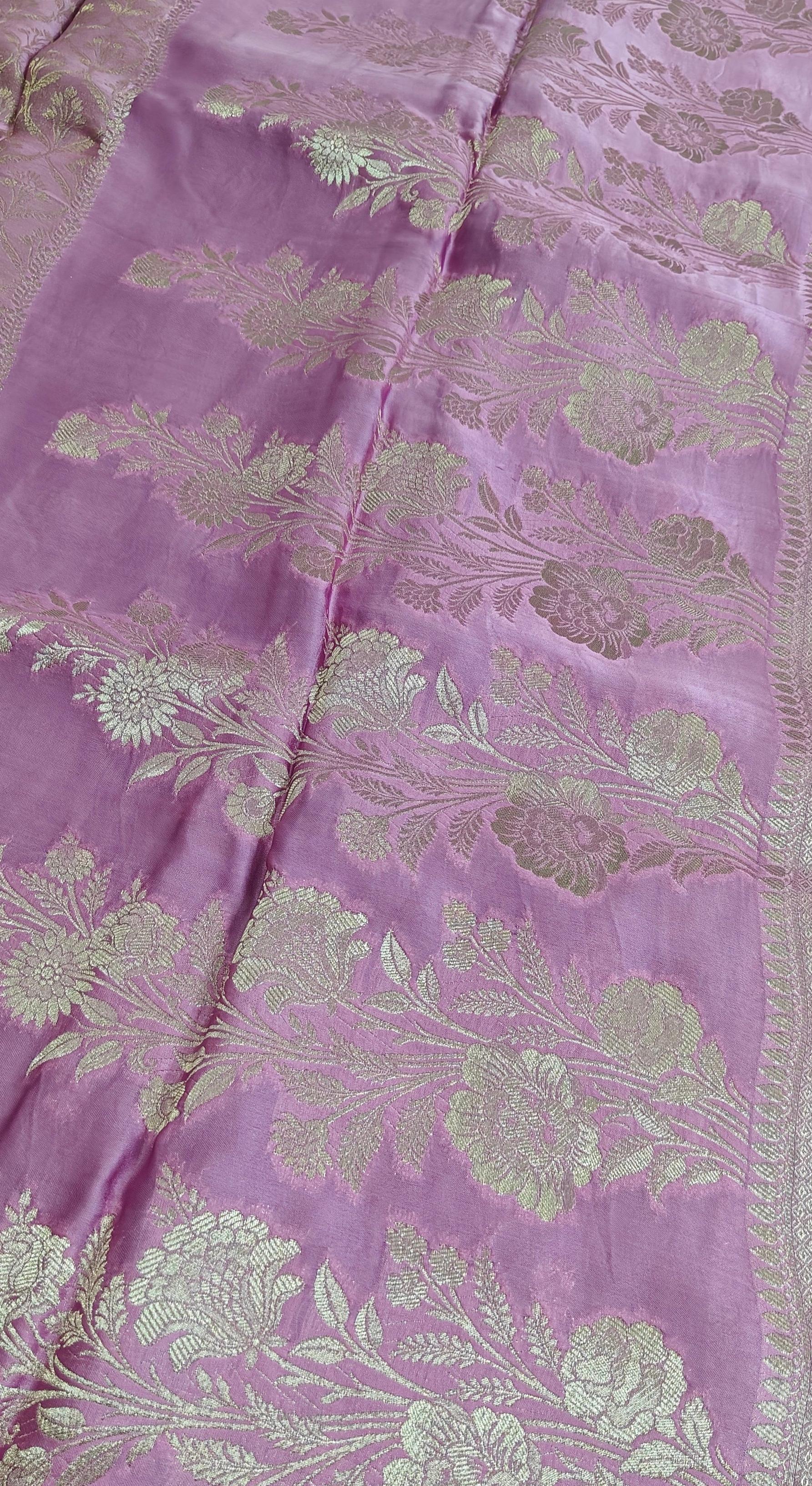 Elevate your wardrobe with this designer Light pink Pure Satin crepe silk saree, featuring a luxurious, borderless design that exudes elegance. The saree’s rich purple hue is complemented by a contrasting blouse, while its sheer shine adds a subtle, sophisticated glow. Crafted from premium Satin crepe silk, this saree offers a graceful drape and a refined texture, perfect for special occasions where understated luxury is desired.